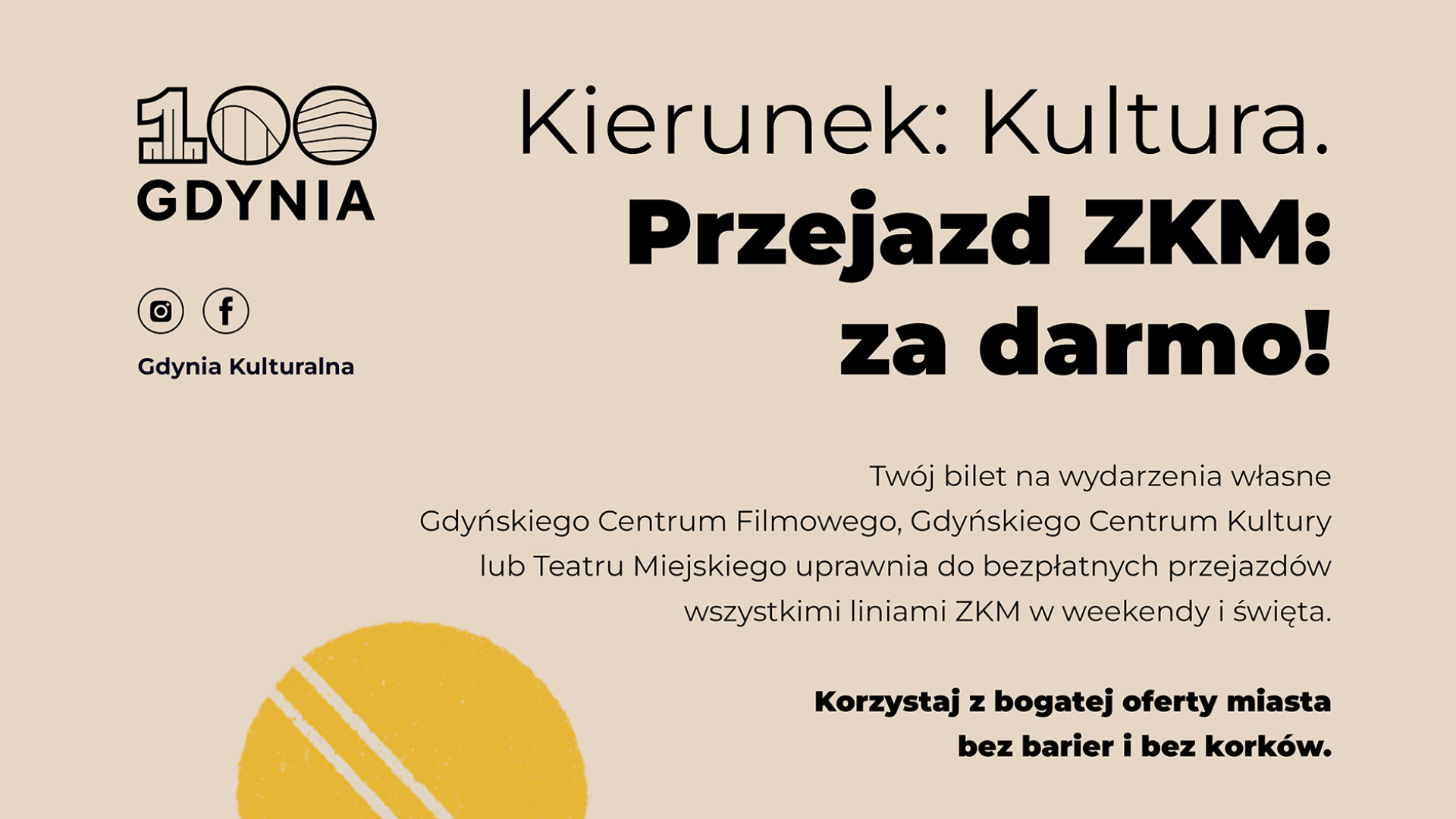 Kierunek: Kultura. Przejazd ZKM: za darmo!   Wystartował pilotażowy program bezpłatnych przejazdów komunikacją miejską dla uczestników wydarzeń kulturalnych w Gdyni....