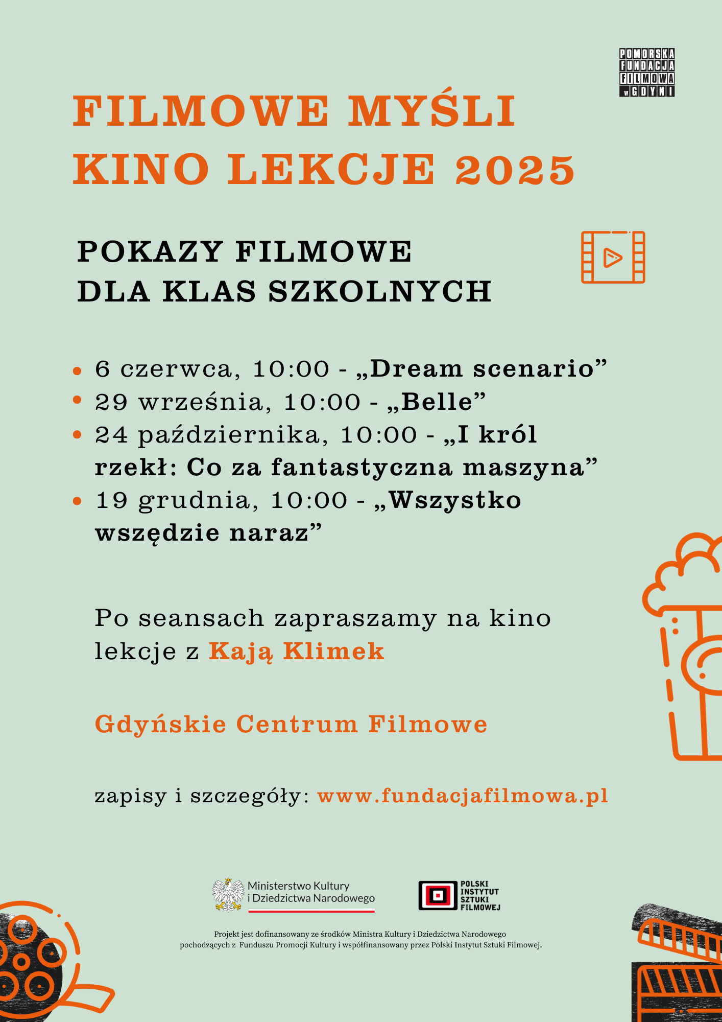 Nie siedźcie w szkolnych ławkach, chodźcie do kina! Pomorska Fundacja Filmowa w Gdyni zaprasza młodzież w wieku 13-18 lat na kolejną edycję „Filmowych myśli. Kino lekcji” z Kają Klimek....