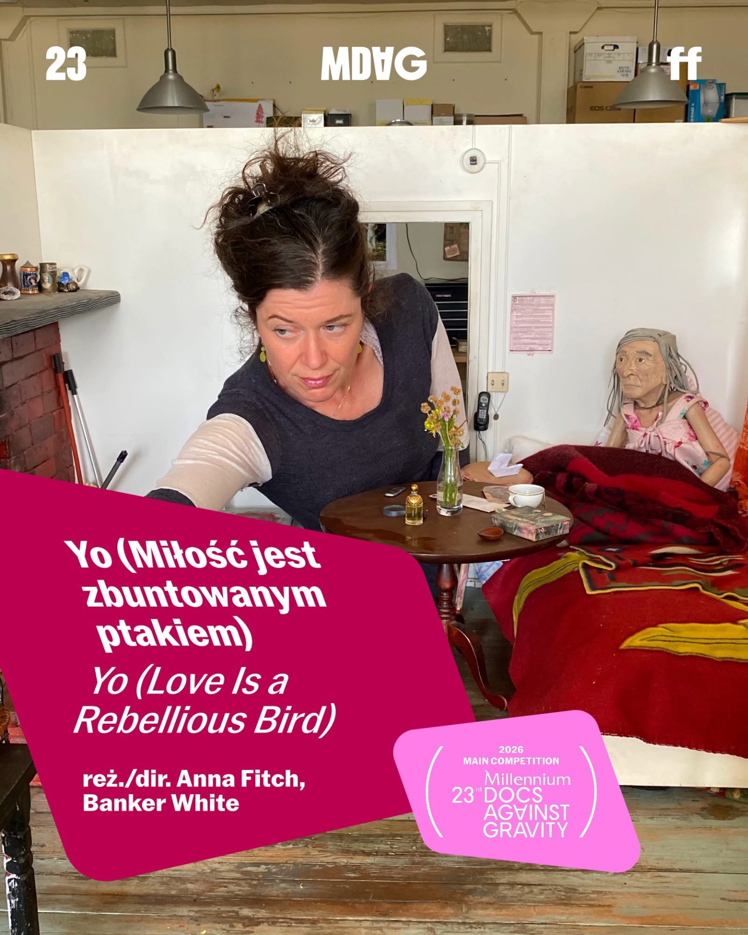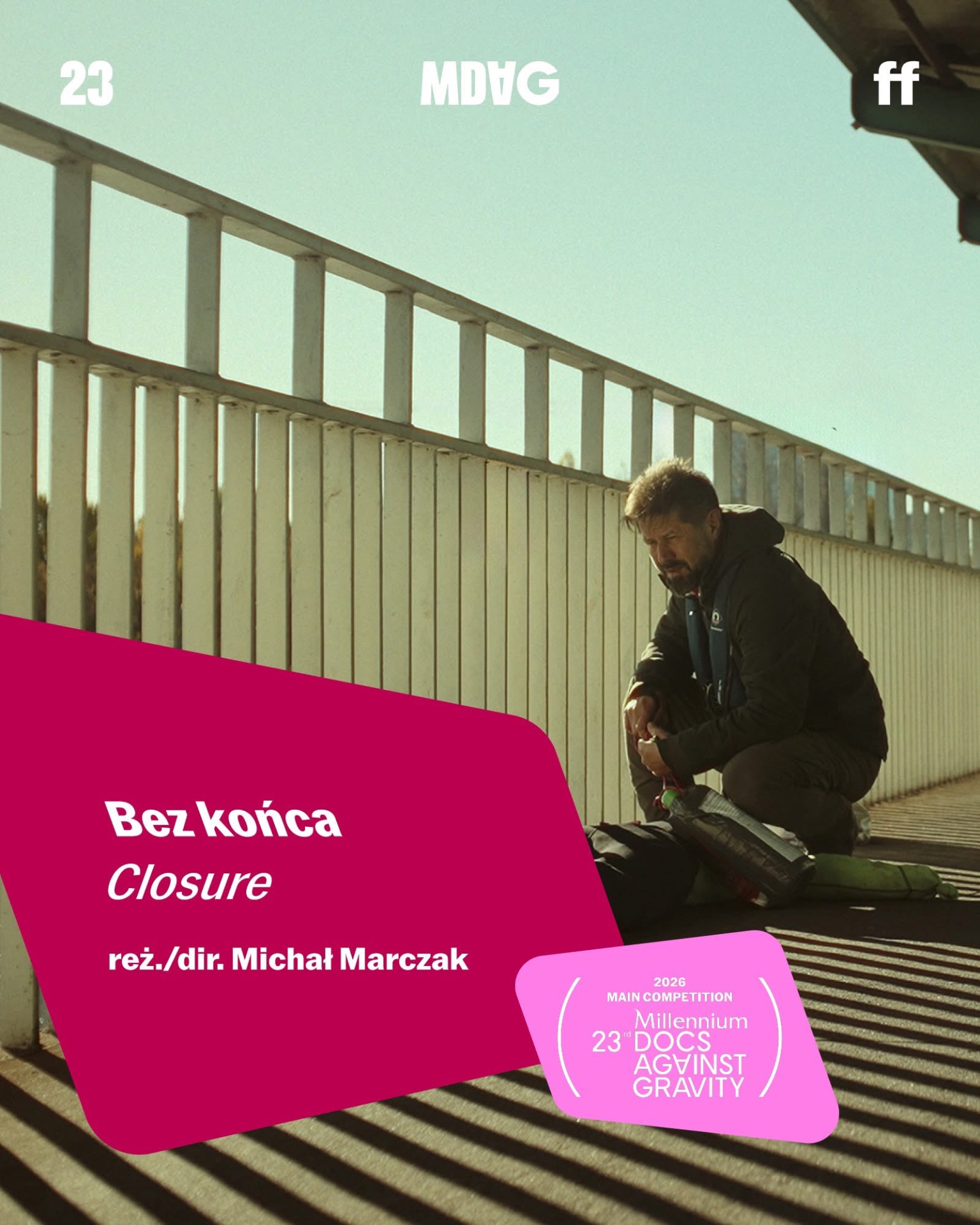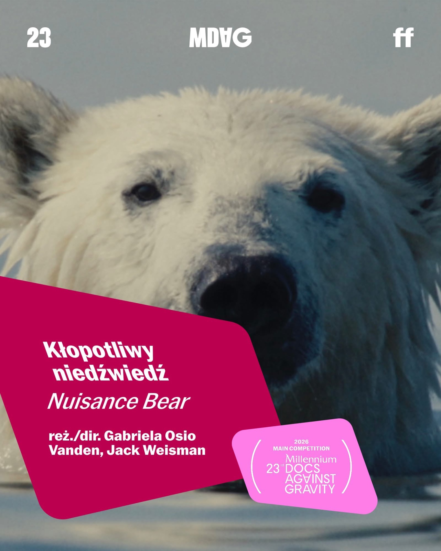 23. Millennium Docs Against Gravity odbędzie się od 8 do 17 maja 2026 roku w Gdyńskim Centrum Filmowym imienia Leszka Kopcia oraz w sześciu miastach (Warszawie, Wrocławiu, Poznaniu, Katowicach, Łodzi oraz Bydgoszczy), a także od 19 maja do 1 czerwca online na mdag.pl!
